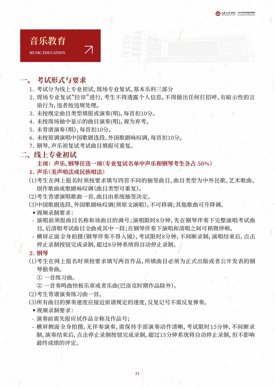 招生简章| 星海音乐学院2025年校考大纲,音科大改革!