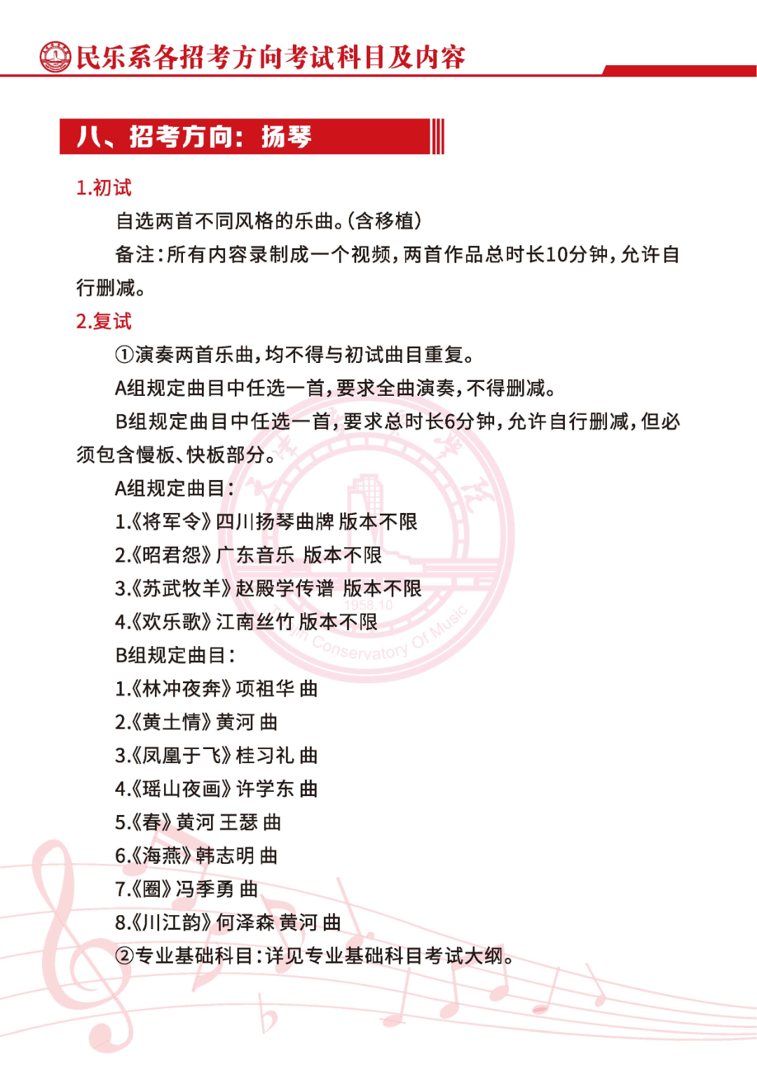 2.取消音乐学(音乐商务与音乐传媒)专业,音乐教育(钢琴主项及声乐主项)专业分别扩招20人。