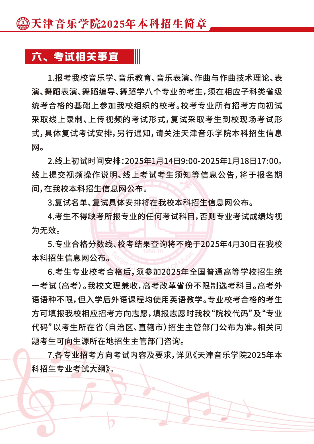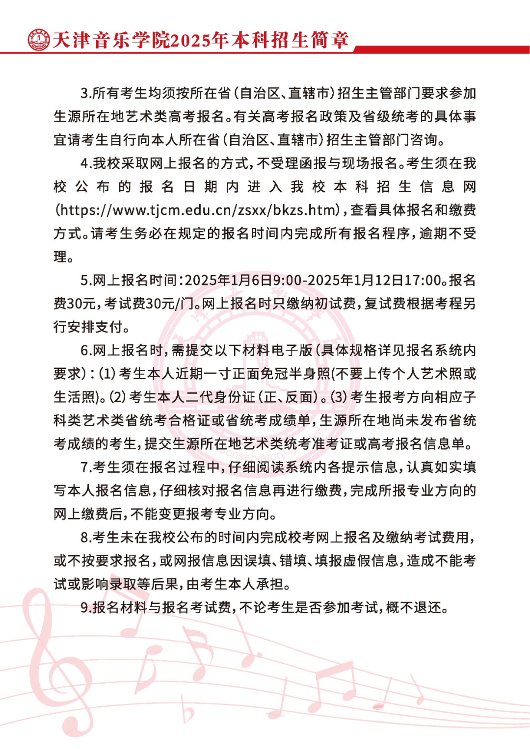 招生简章|天津音乐学院2025年本科校考招生简章