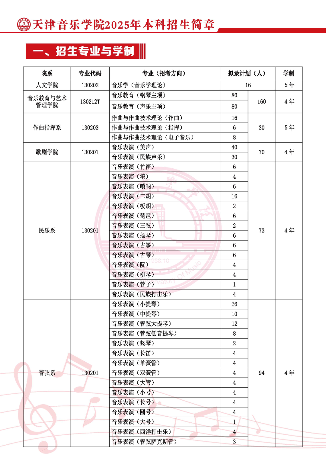 5.管弦系扩招2人。共招94人。
