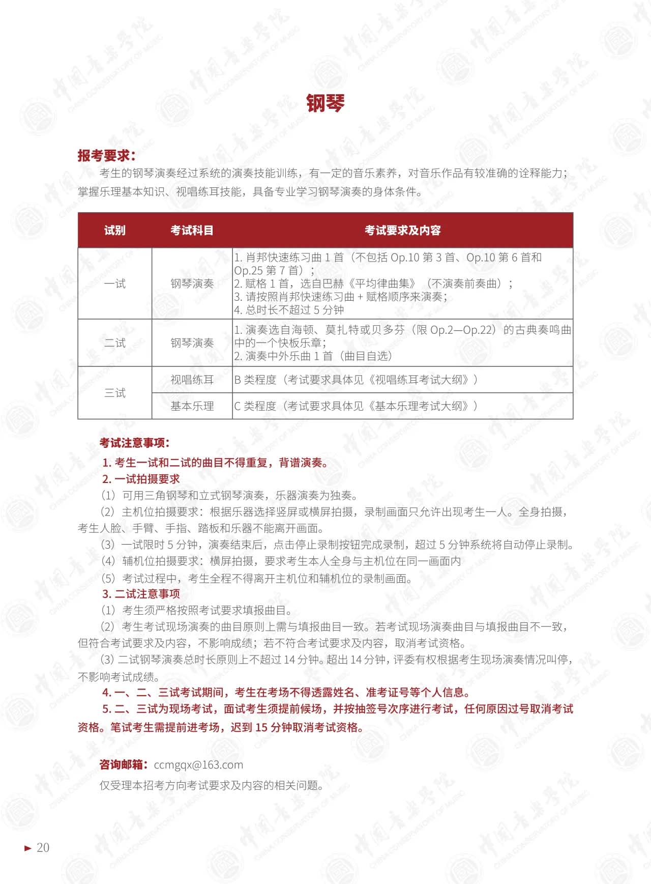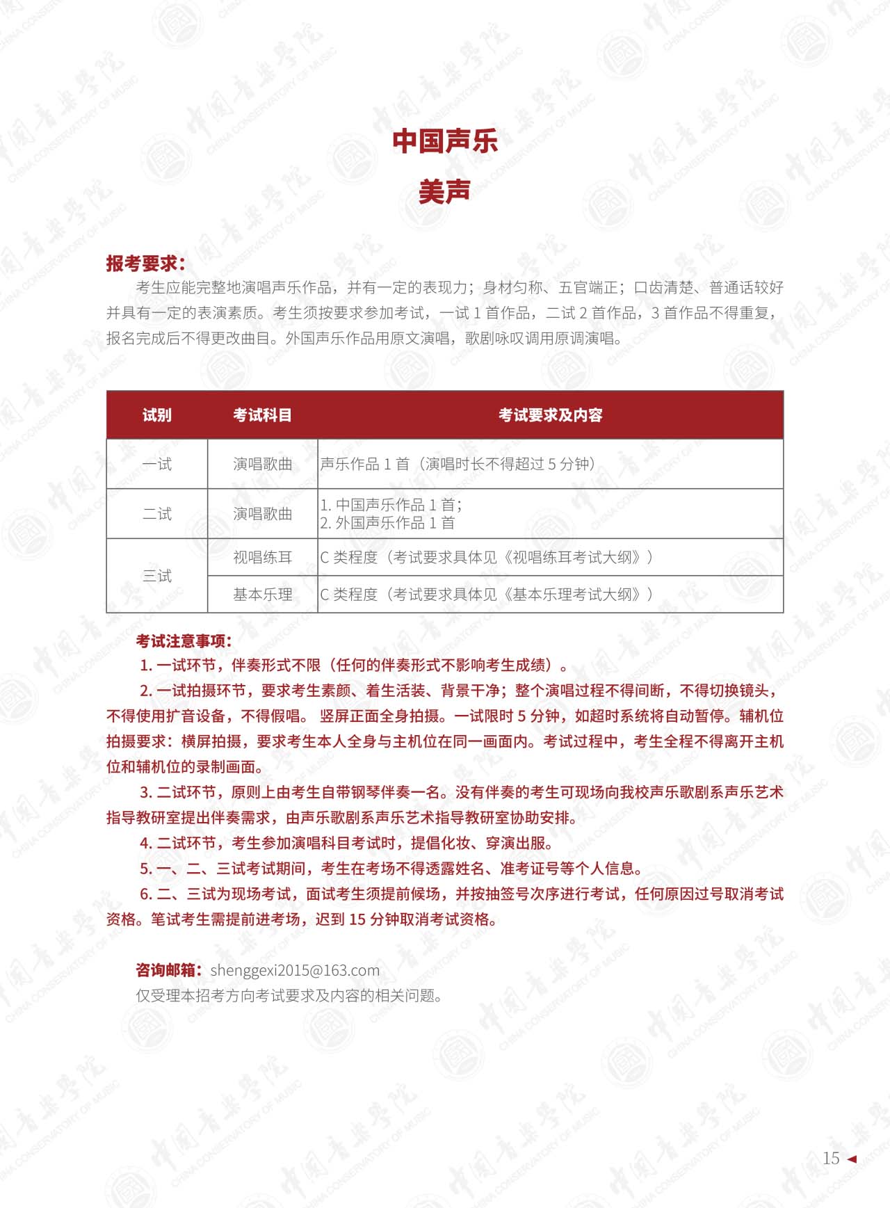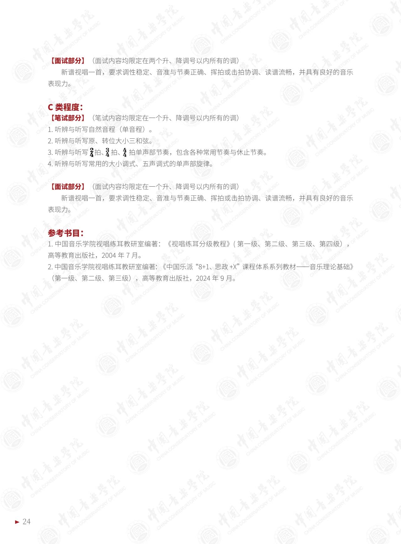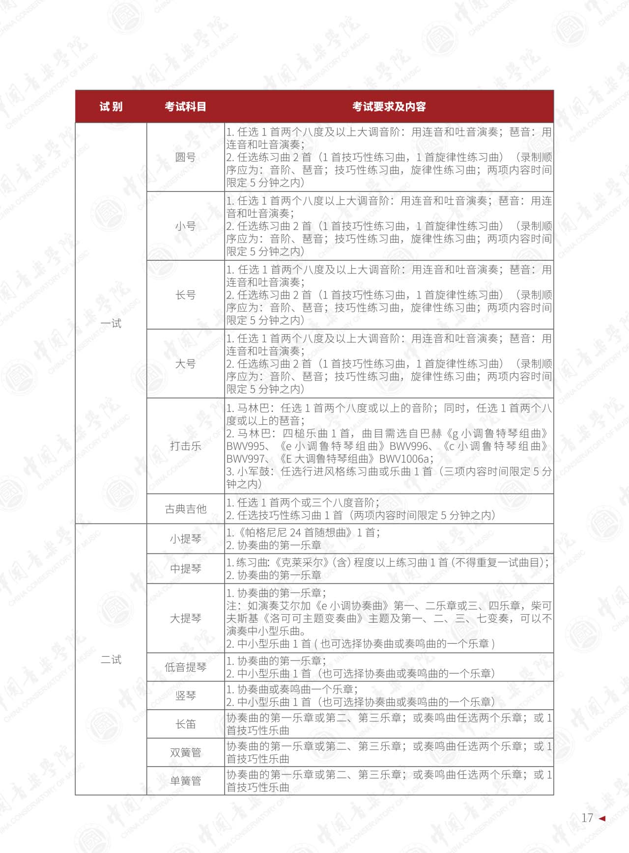 1. 每位考生只可选报1个专业方向。 2. 网上报名时间:2025年1月3日-1月8日(每日7:00-20:00)。 3. 线上初试时间:2025年1月11日-1月15日16:00pm。 4. 二、三试现场考试计划于2月中上旬展开。 6. 录取原则:所有专业采取文过专排形式录取,音乐生文化课须过生源所在省普本线,专业按校考排名择优录取。 7. 破格录取原则:作曲与作曲技术理论、音乐表演专业在名额未招满时,可触发破格录取;音乐学专业、音乐教育专业不执行破格录取。