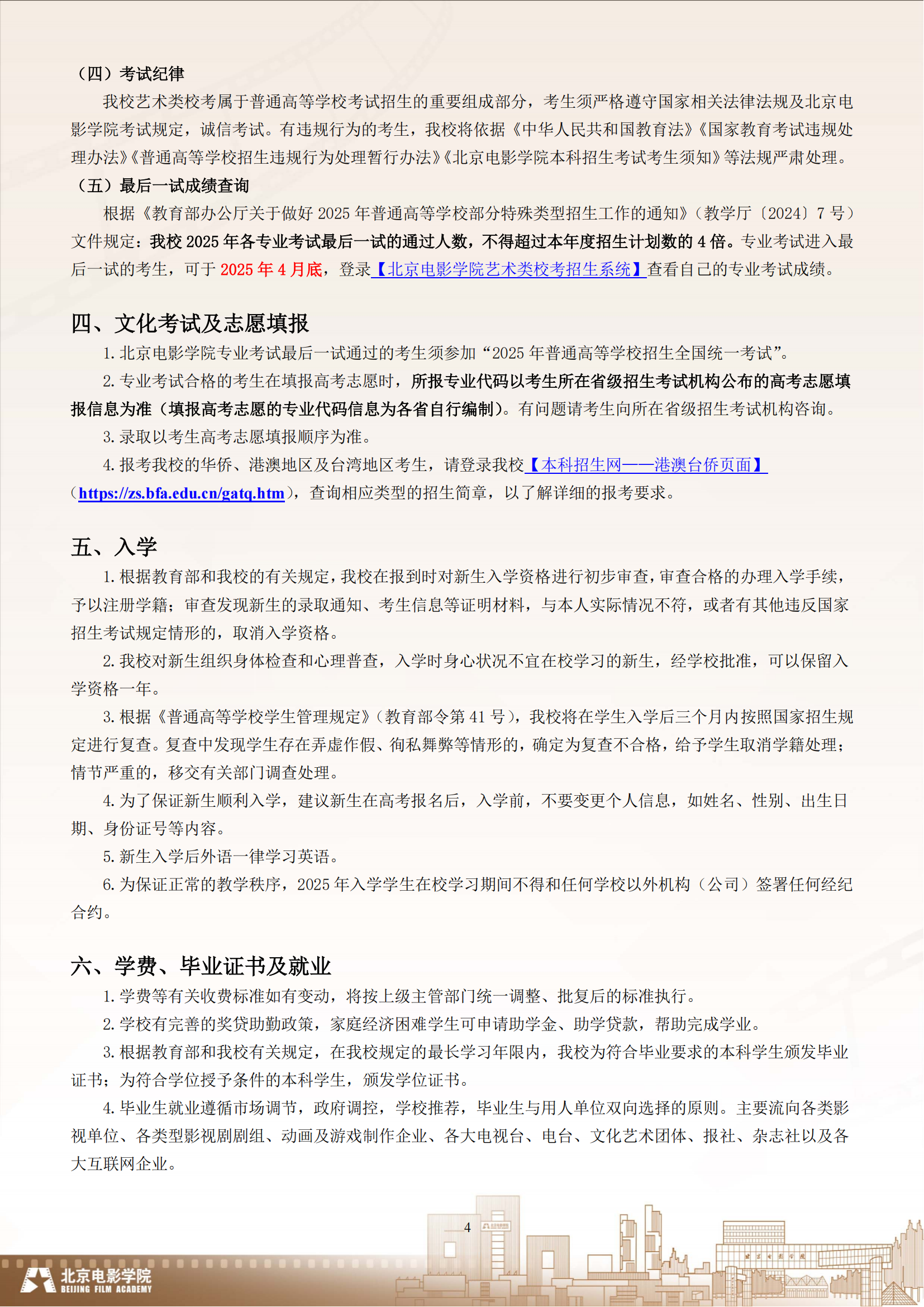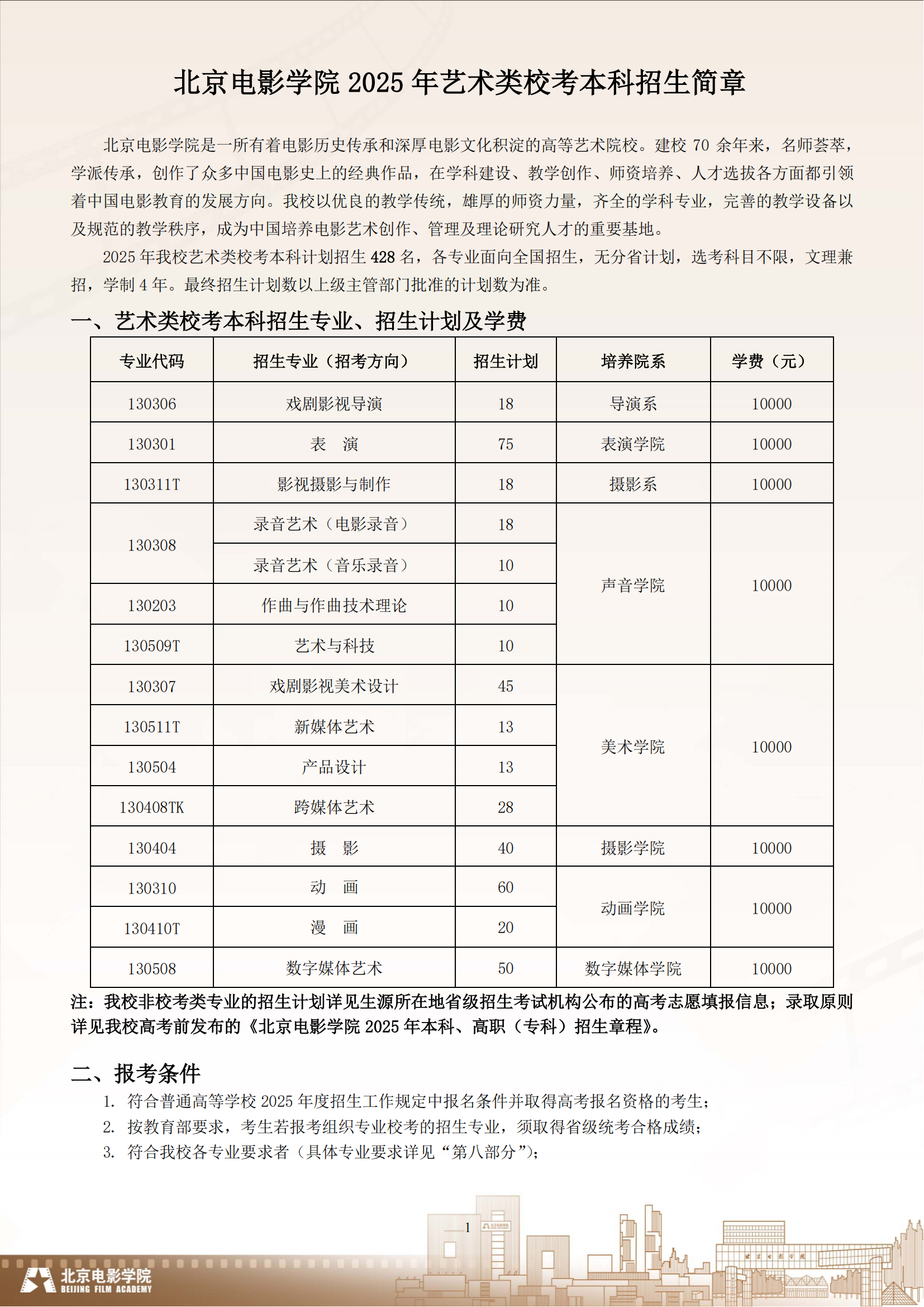 招生简章|北京电影学院2025年艺术类校考本科招生简章