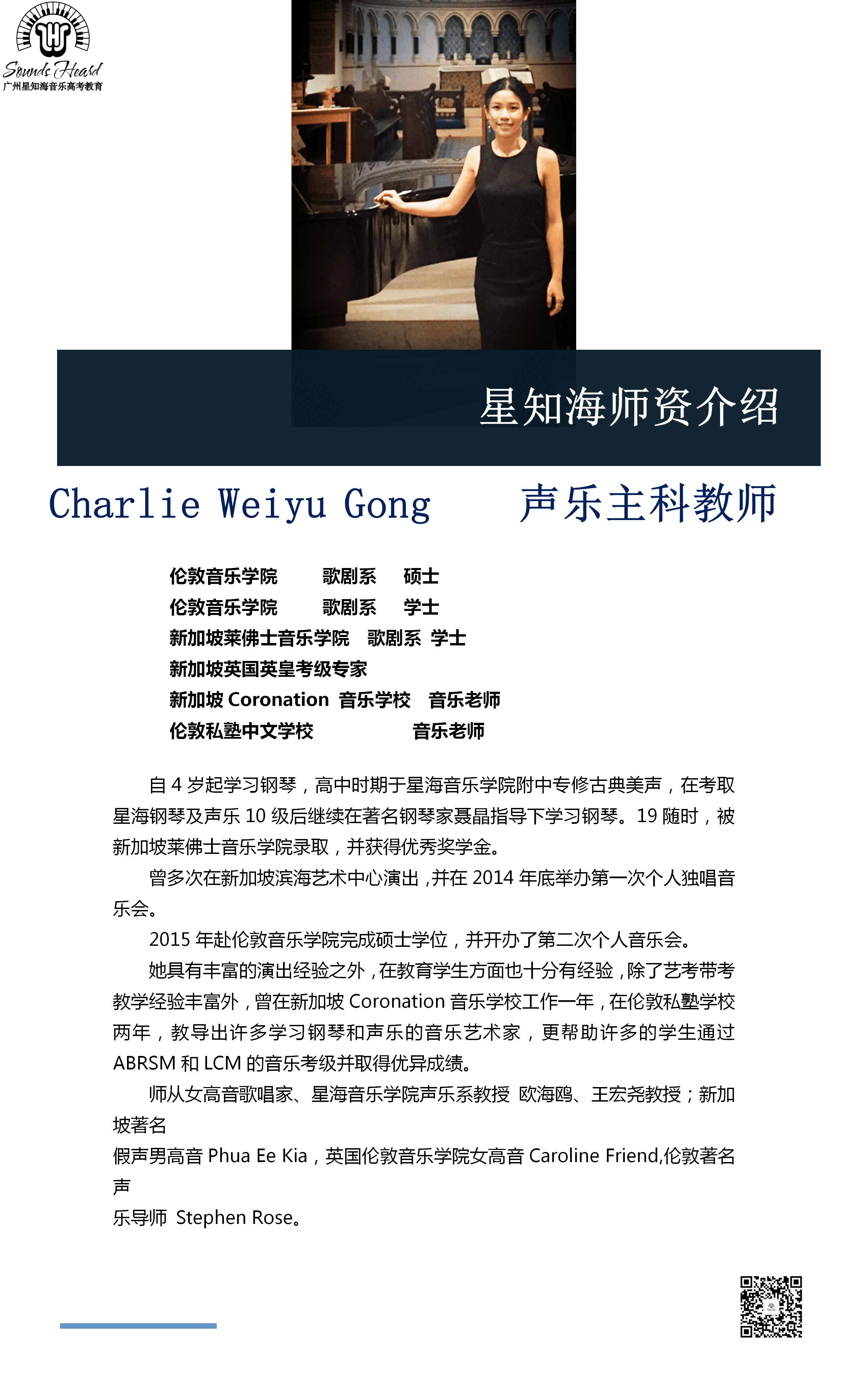 自4岁起学习钢琴,高中时期于星海音乐学院附中专修古典美声